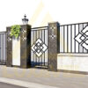 Panou de gard din metal cu dimensiunea 195 x 120 cm.  Alege panoul de gard modelul CUBIX realizat printr-o combinatie de profile metalice dispuse vertical.  Ornamentul central al panoului este format din cinci patrate intercalate.