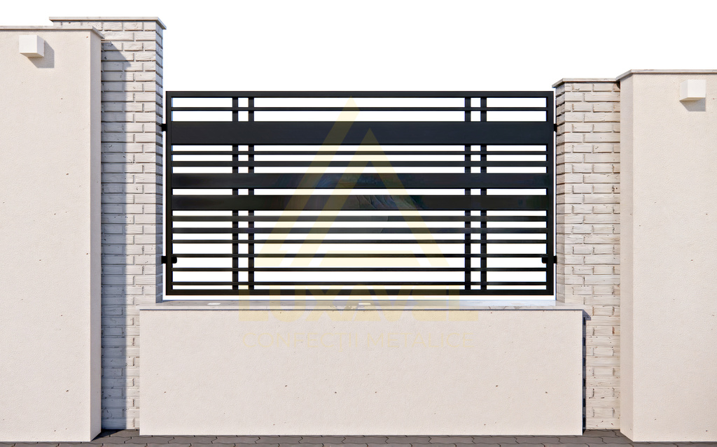 Panou de gard potrivit pentru casa ta. Alege modelul LINEA realizat printr-o combinatie de profile metalice dispuse orizontal. Ofera-i casei tale eleganta si stil.